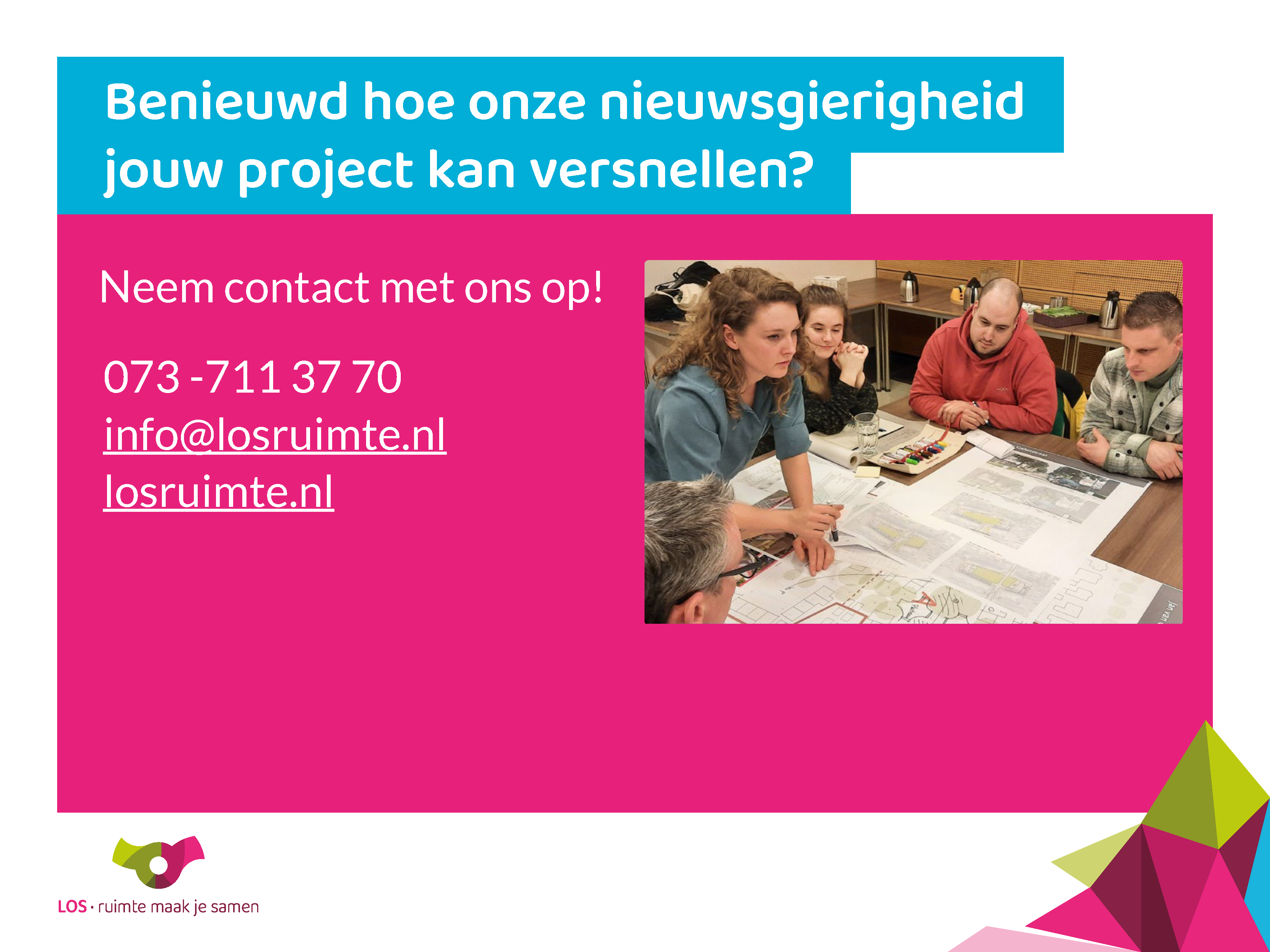 Bij LOS maken we ruimte graag samen. Maar dat is niet altijd eenvoudig. Ruimte is schaars en er zijn vaak uiteenlopende belangen en meningen. En soms ook weerstand: “leuk zo’n plan maar niet hier in onze achtertuin”. Om dan toch tot een breed gedragen plan te kunnen komen is het cruciaal om in gesprek te gaan, goed te luisteren en vooral ook door te vragen. Vaak blijkt achter een stevig standpunt een hele wereld schuil te gaan van oprechte en genuanceerde argumenten, ervaringen en ideeën. Het is de kunst om deze boven tafel te krijgen en te gebruiken als bouwstenen in het planvormingsproces. Dat kan alsnog betekenen dat niet iedereen tevreden zal zijn. Maar wel dat de achterliggende gevoelens en argumenten zorgvuldig zijn meegenomen in het uiteindelijke plan en het besluitvormingsproces. Dat draagt niet alleen bij aan gedragen plannen maar ook aan het onderlinge vertrouwen en vertrouwen in de (lokale) overheid op lange termijn.